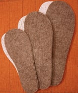Der ideale Begleiter bei nasskaltem Winterwetter: Die wärmenden Einlegesohlen von Weltpartner aus Schafwollfilz und Baumwollgewebe. Die Rohwolle stammt aus traditioneller Schafshaltung in Kirgistan.
