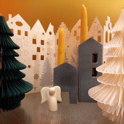Die farbenfrohe Hülle um das Kerzenglas besteht aus Bananenfasern und Gemüsepergament und hat ein verstecktes Muster, welches leuchtet, wenn die Kerze angezündet ist. Eine perfekte Kombination