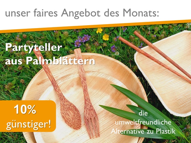 Geeigntete Blätter für die Herstellung der Teller wirft die Arekapalme jedes Jahr freiwillig ab. Die Palme wird ohnehin bereits in vielen Gärten und Kleinplantagen Nepals wegen ihrer Nüsse angebaut - somit finden die Palmblätter als Rohstoff für die Akar-Partyteller eine sinnvolle Verwendung, statt als Abfall verbrannt zu werden.