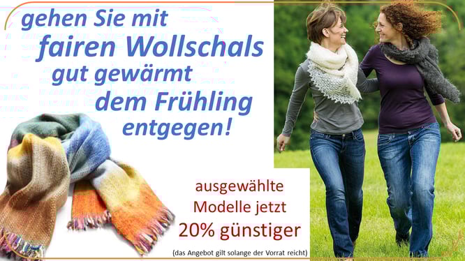 Kuschlig-warme Wollschals erhalten Sie bei uns im Februar 20% günstiger.