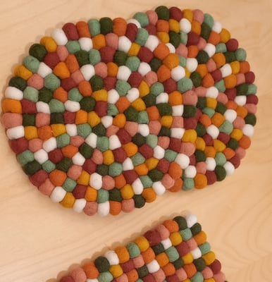 - Die beliebten Topfuntersetzer aus Filzkugeln von Frida Feeling gibt es in neuen Farbkombinationen.