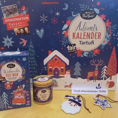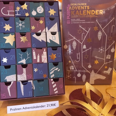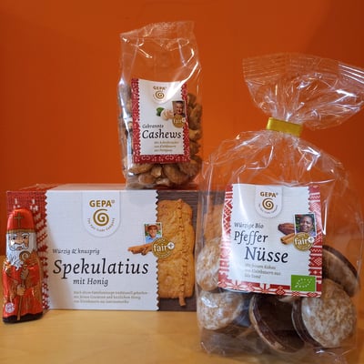 Wir bieten eine vielfältige Auswahl fairer Weihnachtsleckereien an und natürlich auch den fairen Schoko-Nikolaus von GEPA, die Alternative zum kommerziellen Weihnachtsmann aus Schokolade. Der Heilige Nikolaus hat Werte wie Gerechtigkeit und Solidarität mit den Armen und Benachteiligten gelebt – und er würde sich sicher auch heute dafür einsetzen, in Süd und Nord. Diese Werte sind auch für den Fairen Handel zentral.
