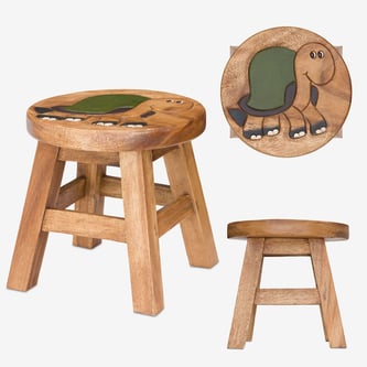 Aus dem Holz des Samanbaums, einer Akazienart, hergestellt sind diese stabilen und doch leichten Hocker mit ihren farbenfrohen Motiven besonders als Kinderschemel beliebt, aber auch