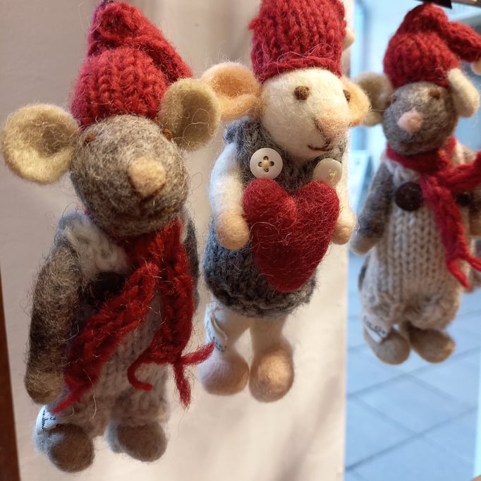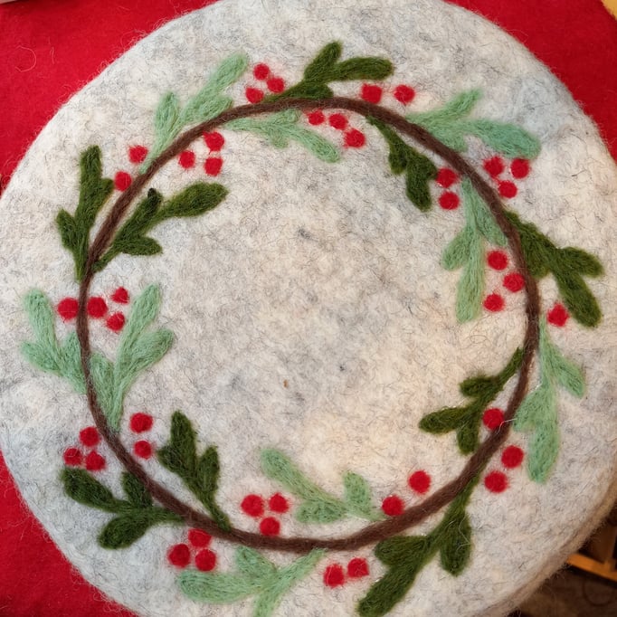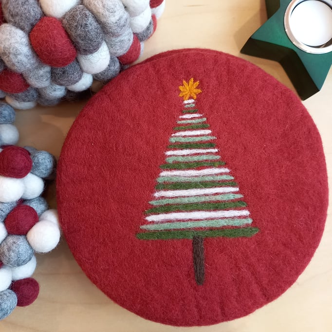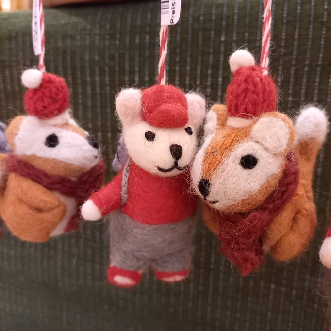 Niedliche Weihnachtsbaumanhänger, bunte Topfuntersetzer und weitere tolle Dekorationsideen aus 100% Schurwolle schaffen eine warme Atmosphäre in der kalten Jahreszeit.