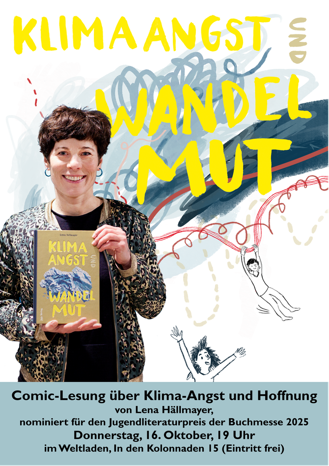 Lena Hällmayers Buch „Klimaangst und Wandelmut“ ist für den Deutschen Jugendliteraturpreis nominiert, in der Kategorie „Neue Talente“ Illustration. Der Preis wird am Freitag nach ihrer Lesung in Bad Nauheim auf der Buchmesse in Frankfurt verliehen.