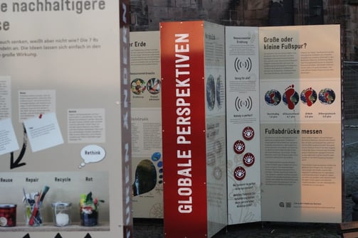 TROTZ REICHTUM ARM ist eine Wanderausstellung, die keinen festen Standort hat, sondern an unterschiedlichen Orten in der Region gezeigt wird. Sie besteht aktuell aus fünf großen Elementen, die jeweils 4 Themenbereiche umfassen: Neben der Vorstellung ausgesuchter Rohstoffe wie Lithium, Palmöl oder Gold, werden auch abstraktere Ressourcen wie Arbeit, Daten oder Wissen aufgegriffen und diskutiert. Dabei wird gezeigt, wie heutige Handelsbeziehungen in historisch gewachsene Machtstrukturen eingebettet sind und bis heute zu großen Ungleichheiten führen in Bezug auf die Kontrolle, den Zugriff und die Nutzung der globalen Ressourcen. Die Ausstellung thematisiert die Kämpfe um Land, Menschenrechte und würdige Lebensbedingungen, die mit dem Ab- bzw. Anbau dieser Rohstoffe einhergehen. Fragen nach globaler Ressourcengerechtigkeit, kolonialen Kontinuitäten, Widerstand und Handlungsoptionen werden ebenfalls beleuchtet.