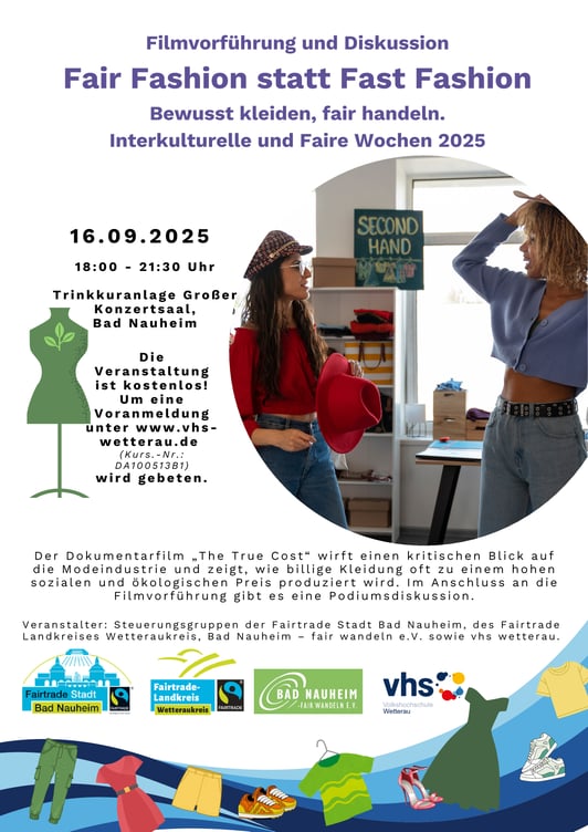 Der Film „The True Cost – der Preis der Mode ” zeigt die immensen sozialen und ökologischen Kosten der immer schnelleren Modezyklen. Im Anschluss an den Film diskutieren wir mögliche Alternativen für einen fairen und nachhaltigen Kleidungsmarkt.